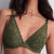 Der Triangel-BH in Schalenform spielt mit dem Kontrast zwischen Bedecktheit und Transparenz. Hoch zulaufende Spitze verziert die Brust und betont die weiblichen Rundungen für ein sinnliches Dekolleté. Die im „Eiffelturm“-Stil gearbeitete Rückseite sorgt für Komfort und Halt im Alltag.