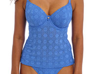 Der sportliche Tankini überzeugt mit seinem Degradée-Effekt in vorteilhafter A-Linie. Die eingearbeiteten bügellosen Softcups sorgen für einen angenehmen und sicheren Tragekomfort. Die Farbpalette reicht von hellblau bis zu tiefem Dunkelblau und der Wickeleffekt setzt das Dekolleté in Szene. Der schwarze Taillenslip mit Shape-Effekt zaubert ganz einfach einen flachen Bauch.