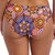 Der klassische Schnitt der Bikinihose wird durch ein wunderschönes Print in Orange, Rosa und Blau ergänzt.