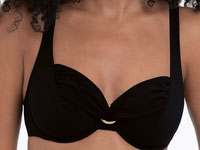 Die Serie "Normandie" von Lisca Swimwear, in klassischen Schwarz bietet echte Wellness-Bikinis. Die Vollschale mit den extrabreiten Trägern aus softem, fein geripptem Material schmiegt sich weich auf die Haut und macht am Strand oder in der Wellnessoase gleichermaßen eine gute Figur.
