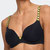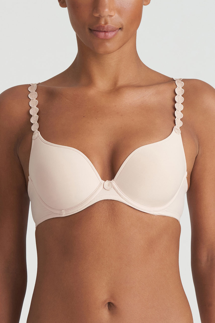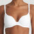 Der gepolsterte BH mit herzförmigen Cups umschließt einen großen Teil der Brust. Die Träger können gerade oder als Neckholder-Modell getragen werden.