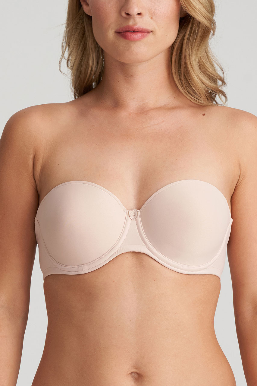Trägerloser BH mit Bandeau-Cupschnitt. Der gerade Rücken hat ein breiteres elastischen Bändchen, das in Kombination mit dem Stoff für zusätzlichen Halt sorgt. Sie können den BH trägerlos, um den Hals oder normal tragen.
