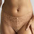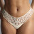 Ein eleganter String aus transparenter schwarzer Spitze, verziert mit luxuriösen goldenen Akzenten. Perfekt für ein selbstbewusstes, stilvolles Lingerie-Set.