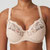 Dreiteiliger Vollschalen-BH aus einem karierten Stoff mit betörender Spitze an Dekolleté und Trägern.